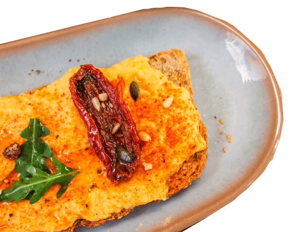 -Tosta dulce 4,00€ Fresa, banana, mantequilla de maní, miel,